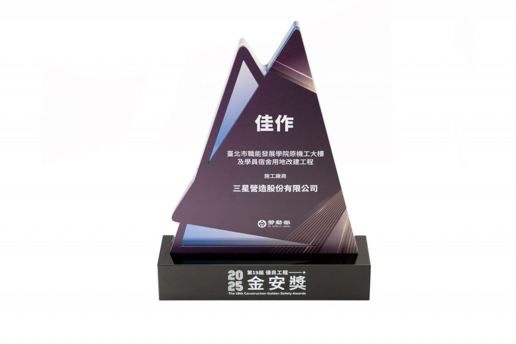 由本公司承攬之「臺北市職能發展學院原機工大樓及學員宿舍用地改建工程」,憑藉嚴謹的職業安全衛生管理體系,榮獲勞動部舉辦第 19 屆優良工程金安獎工程類-公共工程組—— 佳作!